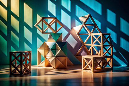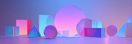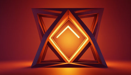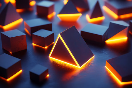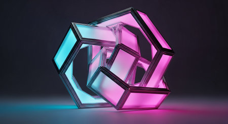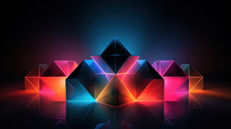 Explore a captivating arrangement of geometric shapes illuminated by vibrant neon lights. A modern and artistic composition that sparks creativity and imagination.