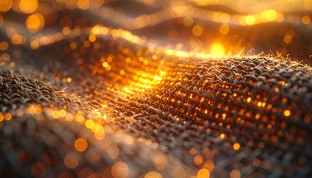 Captivating abstract texture featuring a glowing golden mesh with soft movement. The warm light creates a dreamy atmosphere, perfect for artistic projects.