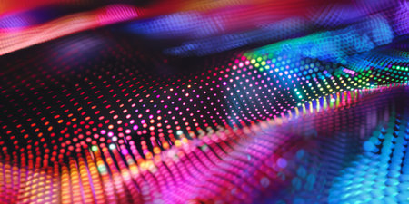 Vibrant dot texture overlay creates a colorful abstract background on dark surface