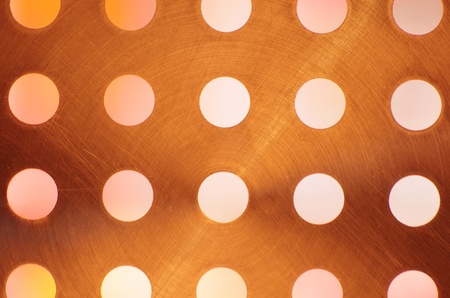 Abstract background close up of a scratched metal surface with rows of equidistant holes.