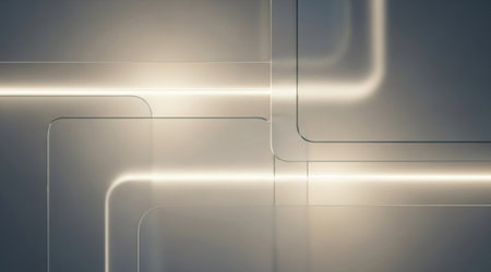 Minimalist geometric background design. Abstract square panels smooth corners. Soft glowing light effect lines technological backdrop.