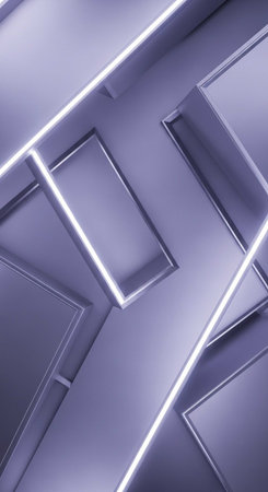 A futuristic purple background with geometric shapes and neon lights
