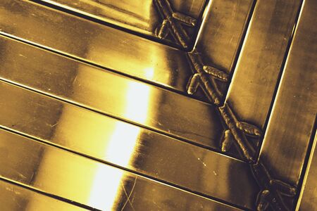 Gold metal background or texture of brushed steel plate with reflections Iron plate and shiny
