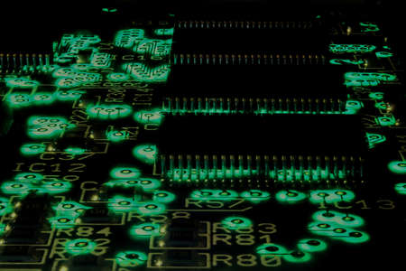 Close-up of electronic circuit board with microchips. Technology background