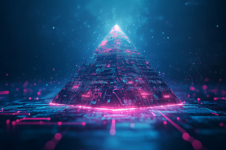 A stunning digital representation of a futuristic pyramid with glowing elements surrounded by a surreal bokeh effect, perfect for technology and abstract themes.