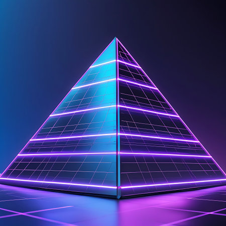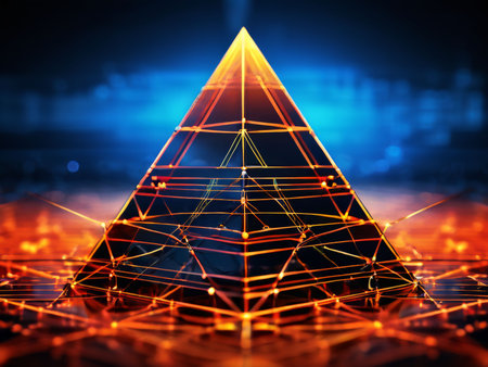 A mesmerizing 3D neon pyramid symbolizes advanced data analysis and technology, making it perfect for digital modeling and visualization in todays fastevolving digital landscape