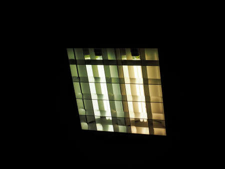 fluorescent lamp in the dark on the ceiling