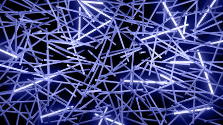 3d render. 3d abstract simple geometric background with blue blocks like light bulbs flashing neon lights. Creative simple motion design bg with 3d objects