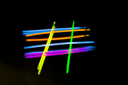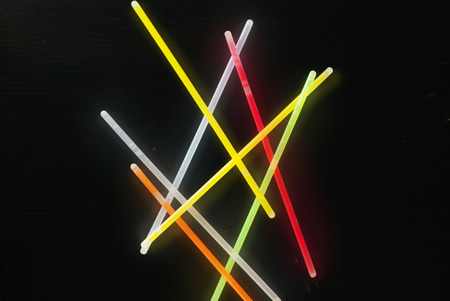 Colorful fluorescent light neon glow stick on black background.