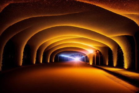 AI Generated. A brightly lit and colorful tunnel perspective view