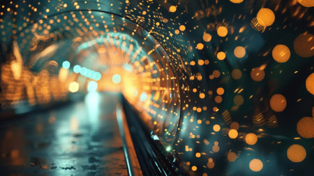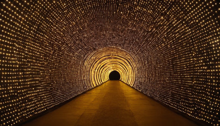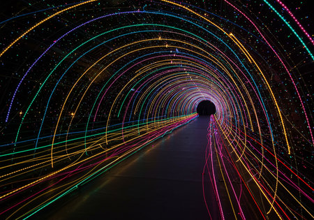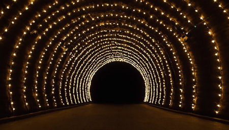 Mesmerizing light tunnel illuminates the night, creating a futuristic atmosphere with countless sparkling lights forming an immersive and festive pathway