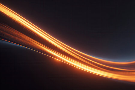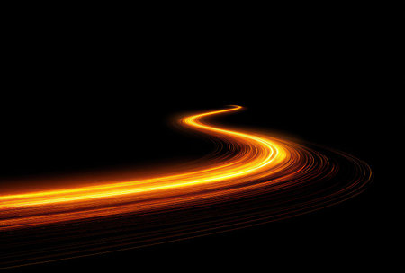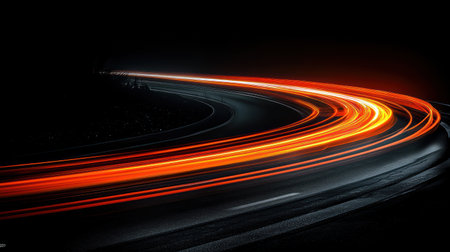 An Abstract light trails create dynamic scene in dark environment, showcasing vibrant orange hues