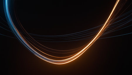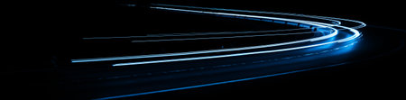 An abstract representation of light trails swirling in a dark background, generating a dynamic sense of motion and energy through smooth, illuminated curves and lines.