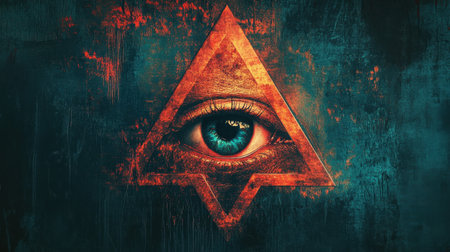 Open eye with a fiery triangle symbolizing the eye of providence, representing concepts of vision, knowledge, and spiritual enlightenment