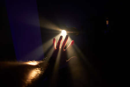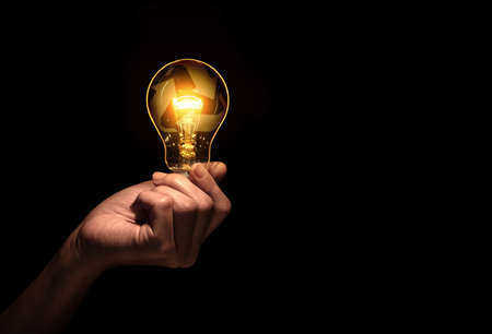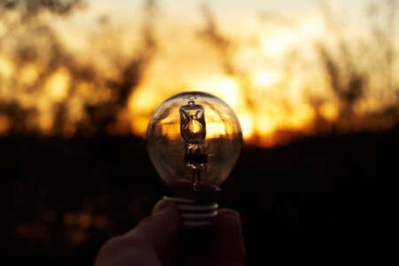 Hand holding a light bulb represents a rather dark and abstract concepts, and the picture colored vintage.