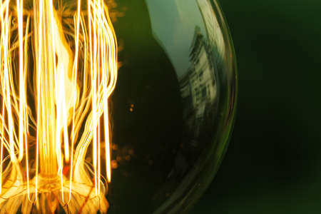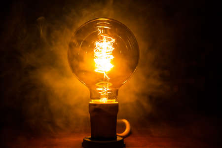 Close up of vintage Edison light bulb on dark background. Selective focus.