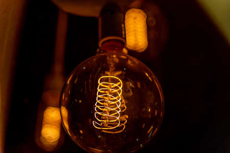 Beautiful retro luxury interior bulb lighting lamp decor glowing in dark. Selective focus