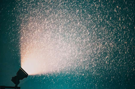 Yellow light of concert spotlights.Beautiful stage background with rays.
