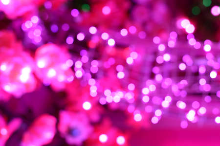 Bokeh light background of beautiful party at night. Pink and purple bokeh.