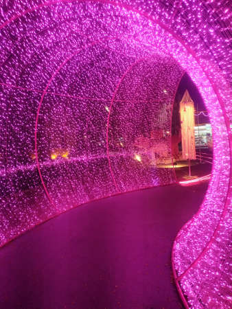 beautiful tunnel made of a luminous garland