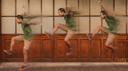 Multiple exposure of a young man jumping with motion blur