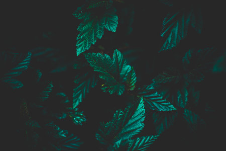green leaves floral foliage environment concept in low key lighting seasonal close up scenic view