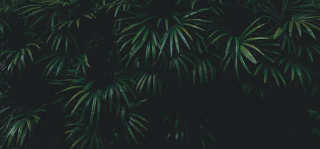 Abstract black tropical leaves texture background with copy space for dark nature concept flat lay