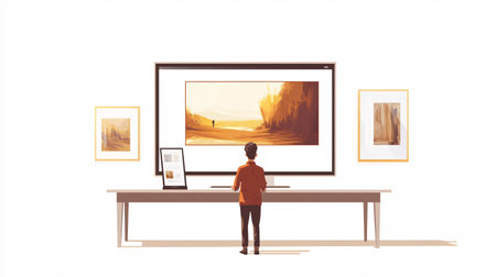 Visitors engaging with art in a vibrant gallery setting, appreciating creative masterpieces