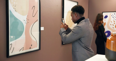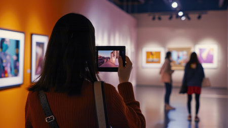 Utilizing smartphone technology to capture vibrant contemporary artwork in a modern gallery exhibition