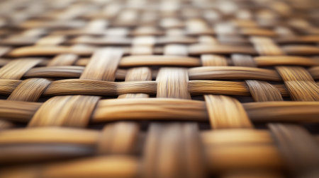 Close up view of a detailed woven texture made from natural fibers highlighting artistry.