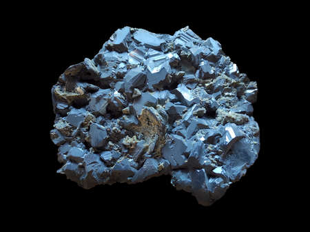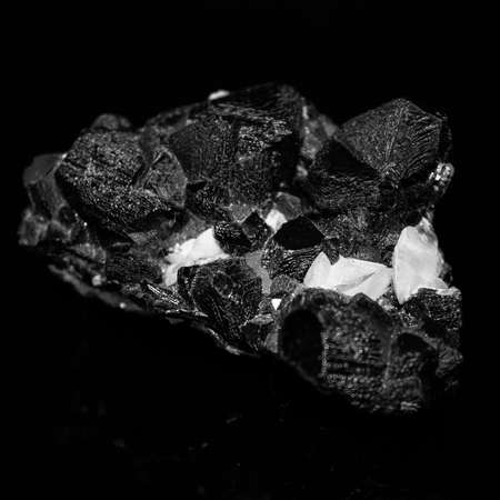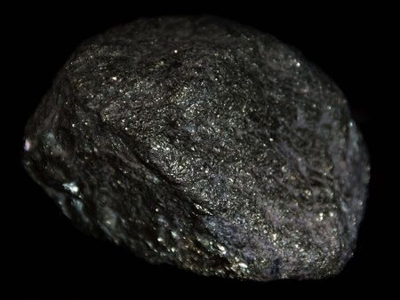 Macro Close up image of raw material Manganese Ore rock isolated on black reflective background