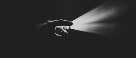 Abstract light rays create an ethereal atmosphere through hand-held illumination in dark setting