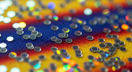 Macro view of colorful glitter, abstract defocused background.