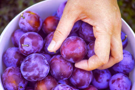 Image of fresh tasty plums, harvest from garden