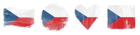 Czech Republic Flag Set Brush Stroke Shapes on White