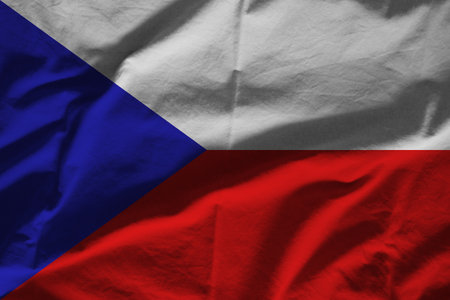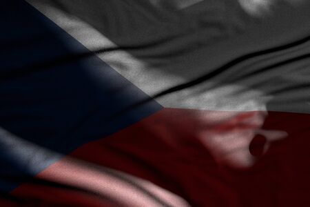 - picture of dark Czechia flag with folds lie in shadows with light spots on it