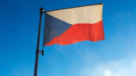 Flag of the Czech Republic flying in the wind with flag pole, isolated in bakcground, 3D rendering