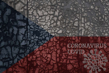 flag of czech republic on a old vintage metal rusty cracked wall with text coronavirus, covid, and virus picture.