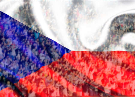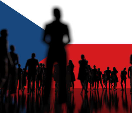 Anonymous people on the flag of the Czech Republic background. 3d rendering