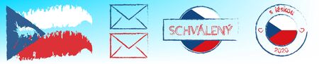 postal stamps in colors and with the symbols of Czech Republic flag. Delivery of greeting cards and letters. Isolated vector on white background