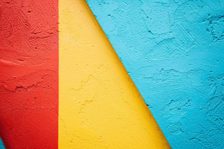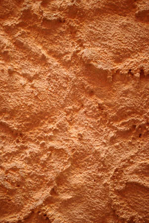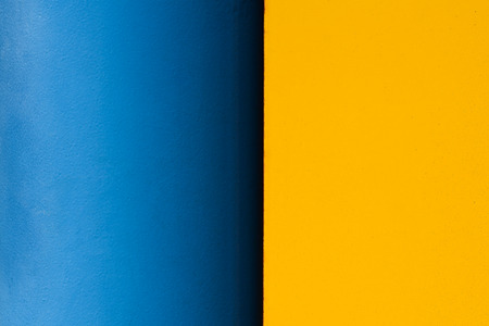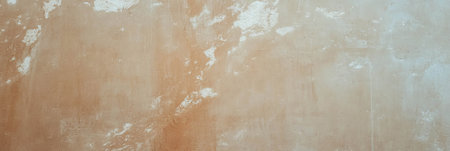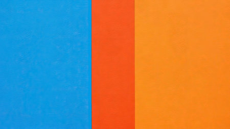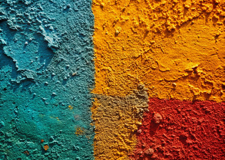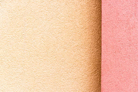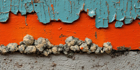 Abstract background of a rough textured wall being painted in white, orange and blue