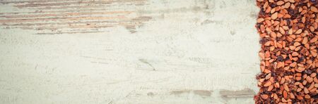 Closeup of vintage turquoise wall texture. Old stone wallpaper. A cleaned painted wall with cements and a textured background. Abstract web banner. Copy space. Selective focus