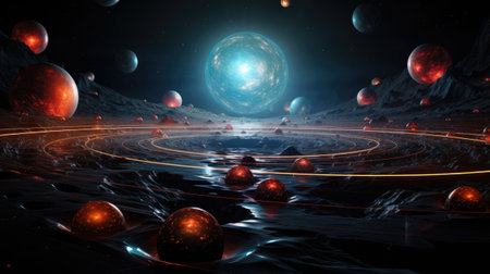 parade of planets in space in a colorful galaxy solar system generative ai.