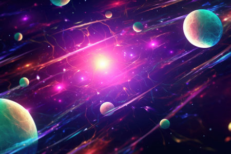 Space abstract background with planets and stars, cosmic landscape in neon colors, AI generated