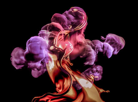 Splash of gold and smoke on a black background. 3d rendering, 3d illustration.