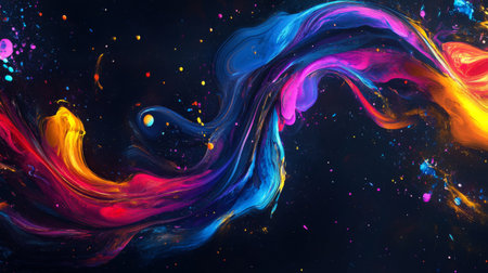 This captivating abstract artwork features dynamic swirls and colorful splashes, embodying the essence of fluid motion and vibrant energy, perfect for creative projects.