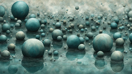 A captivating arrangement of floating orbs showcases reflections of vibrant colors and textures, creating a magical, surreal atmosphere perfect for artistic projects.
