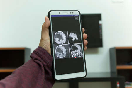 magnetic resonance image, mri scan of the brain on tablet screen computer.