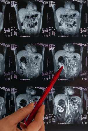 Magnetic resonance imaging, MRI, computed tomography, x-ray image. Area of ​​the pelvis with kidneys infected with tumors