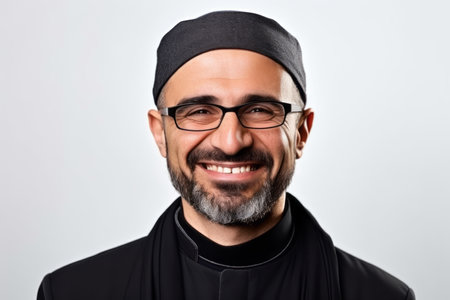 Portrait of a smiling muslim man in a kippah